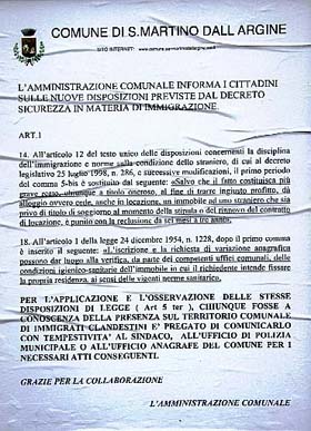 Quindi, se ci rifacciamo ai ‘valori’ proclamati dal sottosegretario di stato, cadde allora ogni riferimento al pretesto dei matrimoni di comodo, ma restò inalterata la violazione del diritto del minore la cui certezza di esistere restava e resta appesa alla labilità di una circolare. Così si è espressa in merito la dr. Mellina Bares, garante regionale dei diritti della persona «l’attuale formulazione della norma potrebbe indurre gli ufficiali di stato civile ad impedire la registrazione della nascita del bambino in condizione di irregolarità – in conseguenza dell’irregolarità del soggiorno dei genitori – con conseguenze gravissime per l’effettiva fruizione da parte del medesimo di fondamentali ed inalienabili diritti civili (diritto al nome, all’identità personale…) » e quindi « ritiene che data la delicatezza della questione, che investe diritti fondamentali del minore, sussista la necessità che venga assicurata piena certezza giuridica alla materia,» – che – «dovrebbe trovare consistente ed esplicita espressione nella norma legislativa» [xiii].